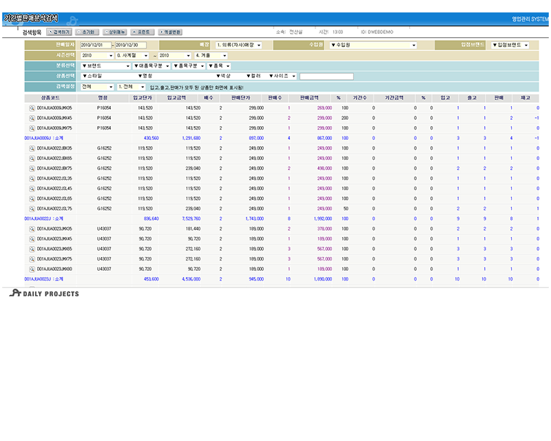 관련 재고내역메뉴들-빅데이타이용,커스트마이징